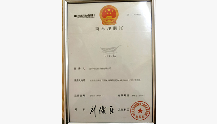 葉片情-商標注冊證