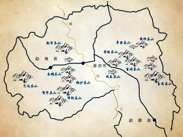 眾所周知,普洱以一山一味而聞名,西雙版納以古六大茶山和新六大茶山而聞名,以瀾滄江為界分為江內六大茶山,也就是古六大茶山:攸樂(基諾山)、革登、倚邦、莽枝、蠻磚、曼撒(易武),和江外新六大茶山:勐宋、